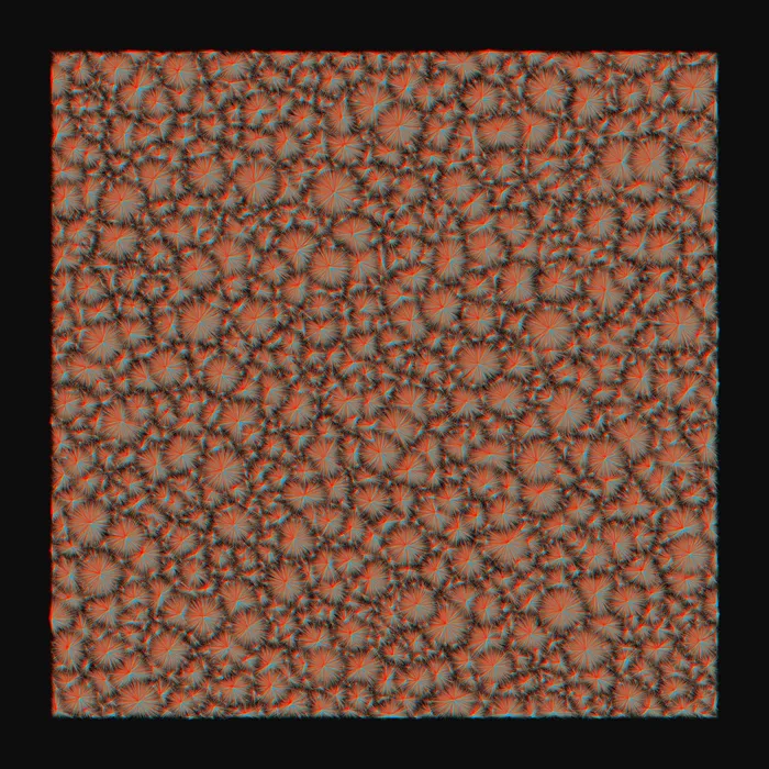 I thought that this had real visual potential so I decided to just remove the circles and focus only on the lines. To give them a sens of tactile depth, I had the idea to render to more lines under each one. One would be blue with a small offset to the right and the other one would be red with a small offset to the left. It gave something pretty interesting.