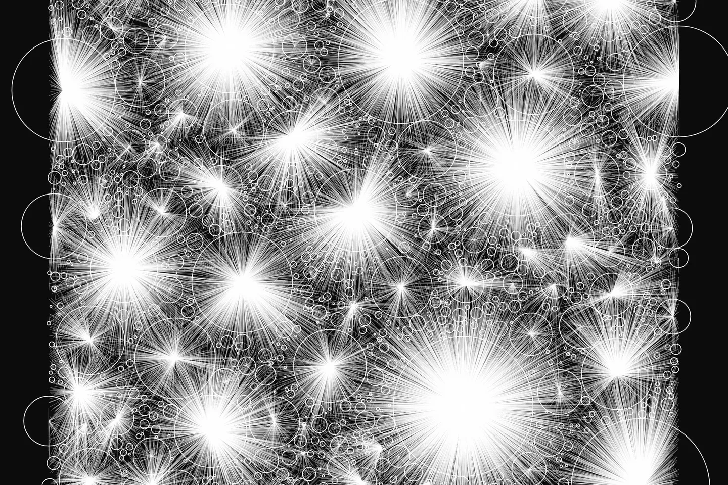 I wanted the optimise the loading or at the very least create the illusion that the whole rendering was faster. I recently learned a trick for that with generator functions*. I use them in a way that give the impression that the rendering of the piece is faster. Instead of generating all the elements of an artwork in a loop and then rendering them (like 10k ellipses with collision detection), you can use a generator function to render the elements one at a time or per batch, which can create the illusion that the artwork is being created in real-time.