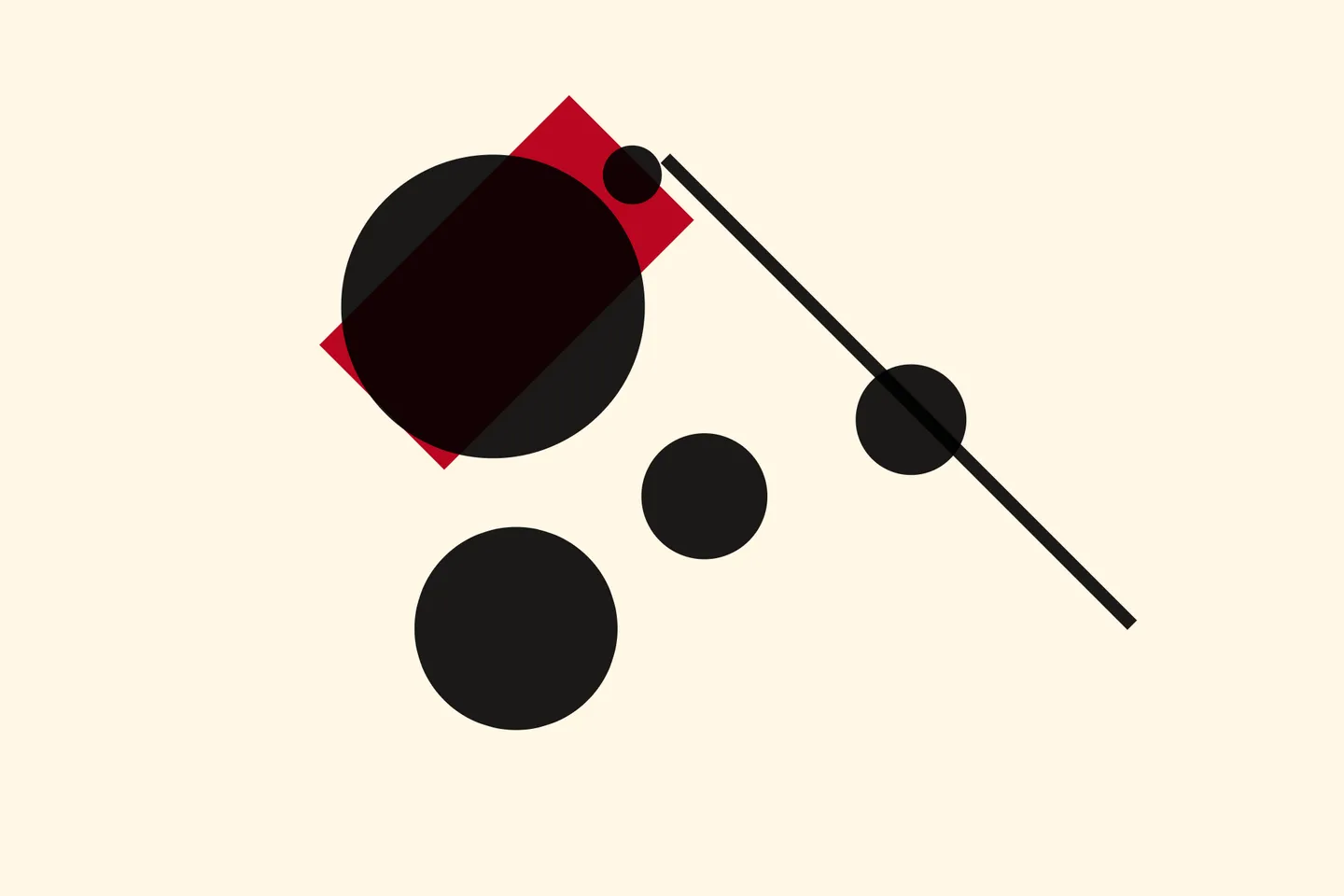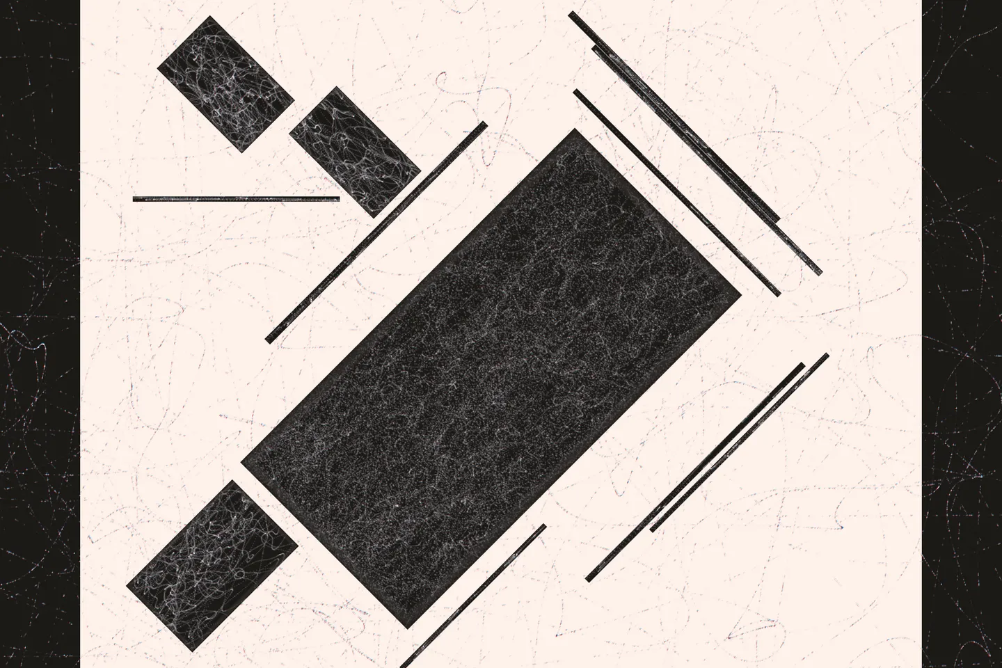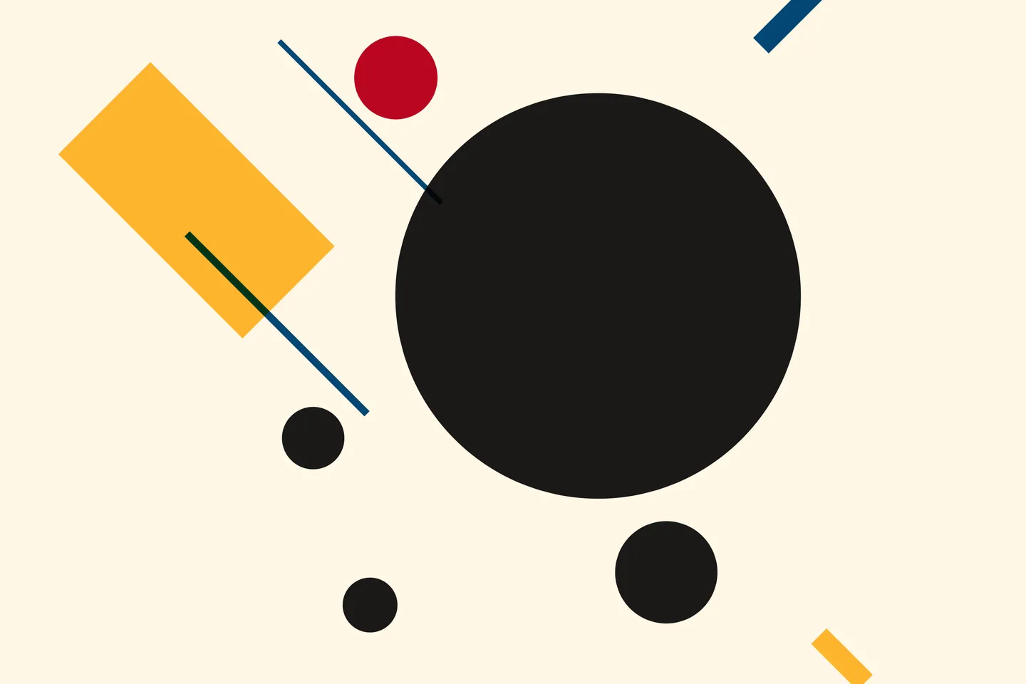 The concept originated from Genuary Day 11, inspired by Suprematism—an abstract art movement founded by Russian artist Kazimir Malevich in 1915. Characterized by basic geometric shapes like squares, circles, and rectangles, and a limited color palette featuring bold primary colors alongside black and white, Suprematism aimed to express the purest form of visual aesthetics. It prioritized the supremacy of pure artistic feeling over representational imagery.