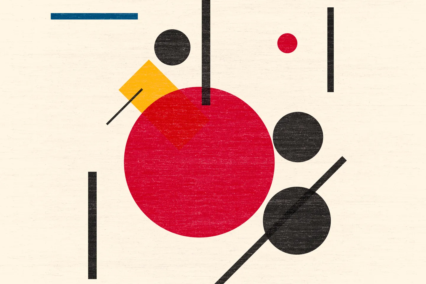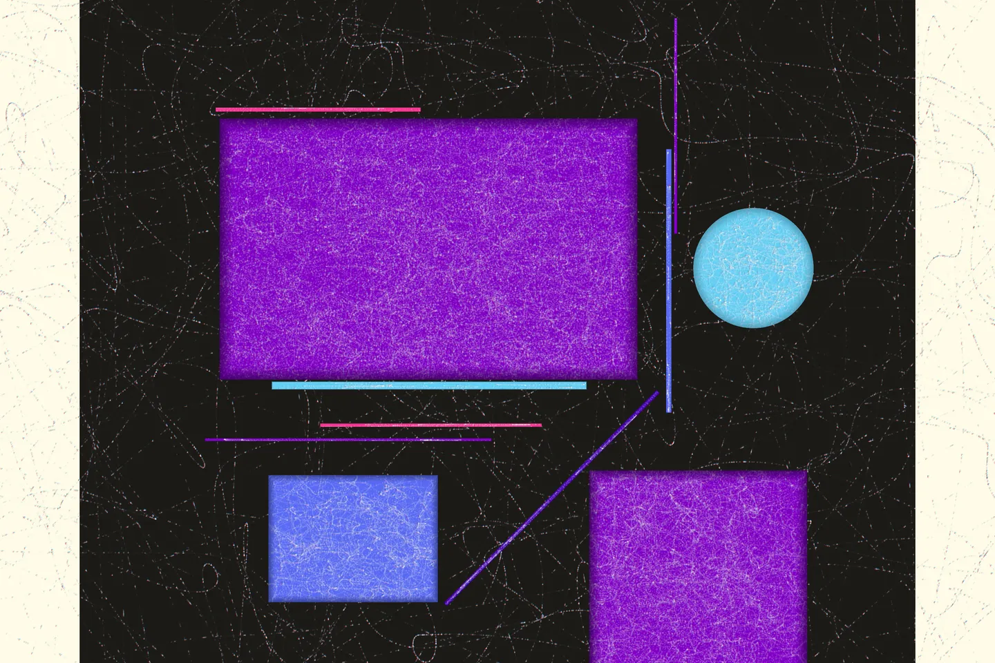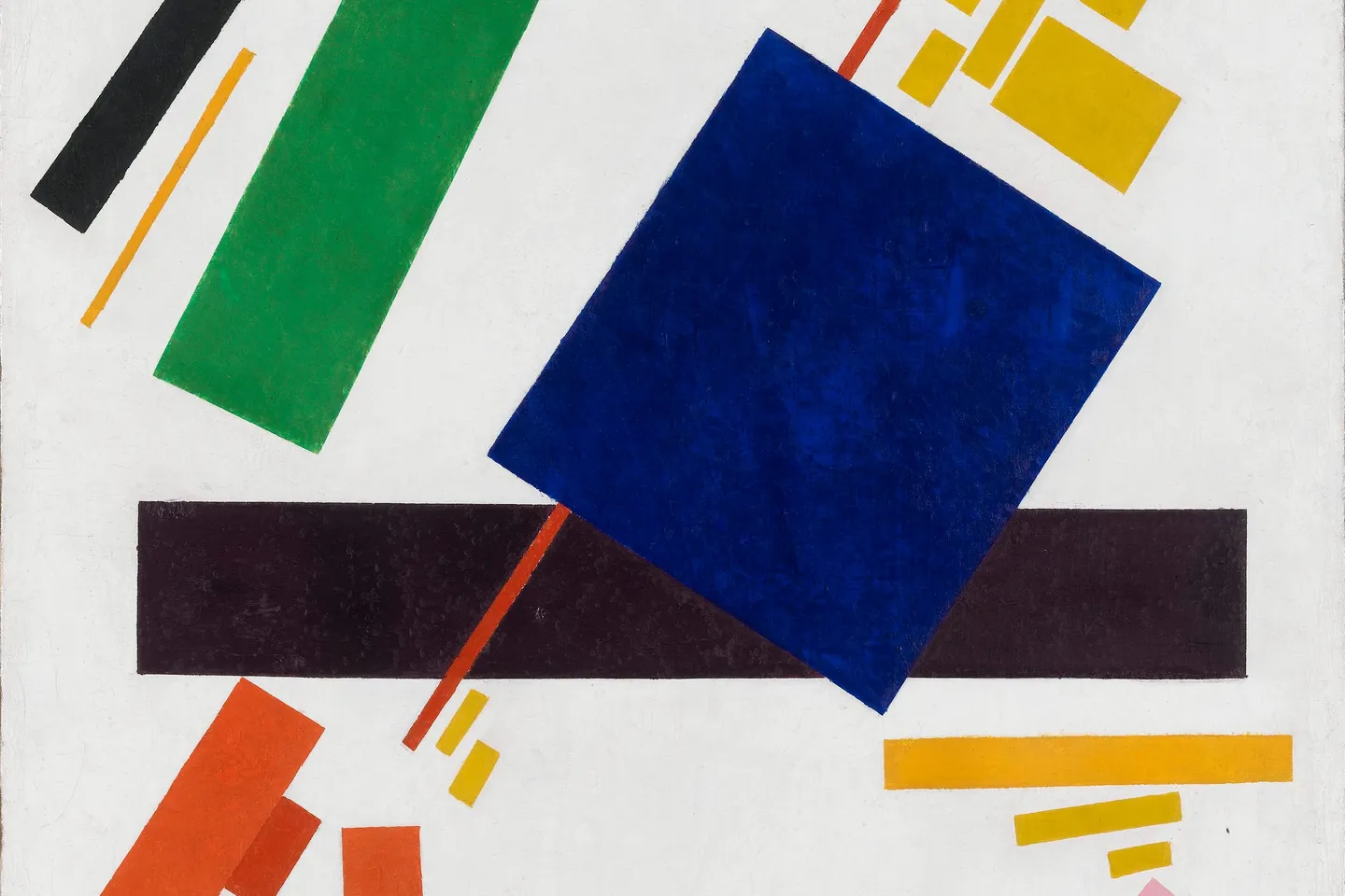 The concept originated from Genuary Day 11, inspired by Suprematism—an abstract art movement founded by Russian artist Kazimir Malevich in 1915. Characterized by basic geometric shapes like squares, circles, and rectangles, and a limited color palette featuring bold primary colors alongside black and white, Suprematism aimed to express the purest form of visual aesthetics. It prioritized the supremacy of pure artistic feeling over representational imagery.